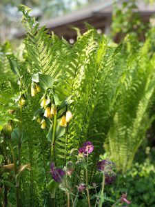クサソテツ、キバナホウチャクソウ、黒花フウロ