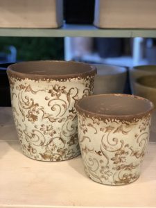 こんなボタニカルな植木鉢も入荷。