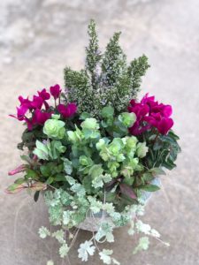 ほら、とってもステキ。ガーデンシクラメンやエリカ、下でご紹介するグレコマと合わせて。季節がグッと進んだね。