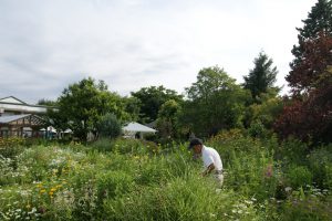 ガーデンのお手入れをする小黒さん。作業もしやすい気候?!