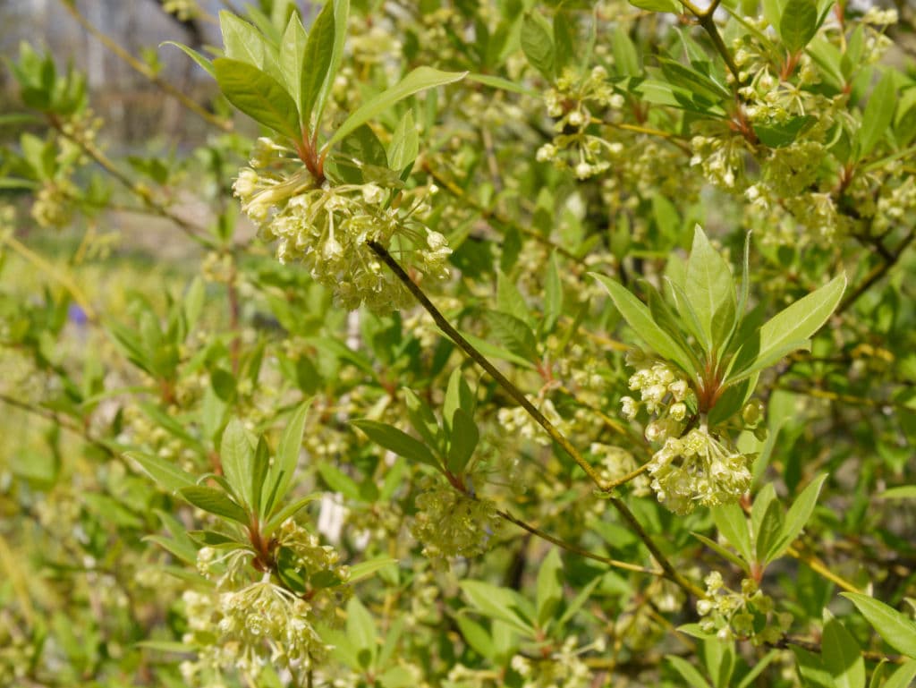 あまり特徴がなく、お花が咲いても黄緑色で目立たない落葉樹なのに、なぜか古刹や神社の境内に植えられていることが多いのが、写真のクロモジの木です。クスノキ科のこの樹木は、独特のさわやかな香りがあって、特に枝に香油成分を多く含むので、昔から高級なつま楊枝として利用されてきました。