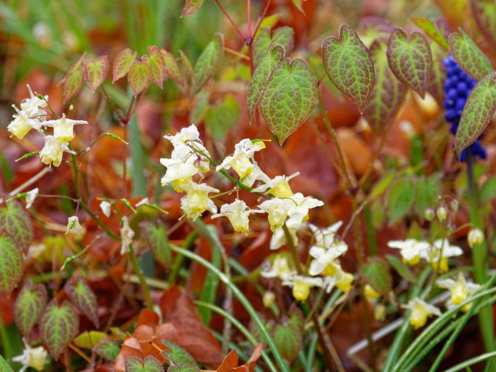 中国原産のイカリソウには育てやすいものや、色の変化が大きいもの、咲き方が変わったものなど園芸的に興味深い種類も知られています。それらと国内種を交配して、園芸植物としてのエピメディウムを育種している人もいますが、広く普及するのはこれからのようです。