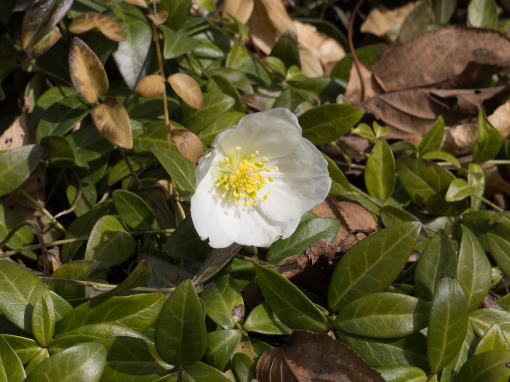 ヒメツルニチニチソウの茂りの中から、花だけ伸び上がって咲いています。ちょっと不思議な感じです。