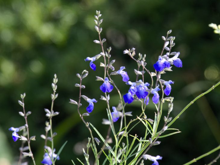 コバルトセージ 投稿日 2018.10.15 カテゴリー ブログ Salvia reptans 名が体をよく表している宿根サルビアで、特に耐寒性の高い種類です。コバルトブルーのお花を枝先全体に付けて賑やかに咲きます。よく枝分かれしてあちこちに枝を伸ばすので、大株になったら余分な枝先を剪定すると姿が整います。 サルビアの中でも秋遅くまで開花する種類で、秋の花壇の最後はメキシカンセージとコバルトセージが締める、なんてこともあるくらいです。乾燥には強い種類ですが日陰は苦手です。日当たりの良い適度に風が通る場所が向いています。
