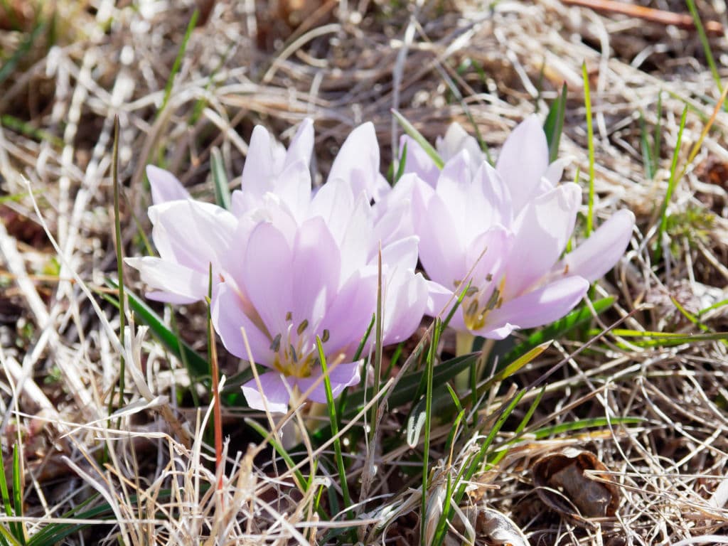 春咲きのコルチカムとして時々ご紹介していたこちらの品種、白花とピンクの二種類が隣り合って植えられていたのですが、今年の春はとうとうピンクだけになってしまいました。
