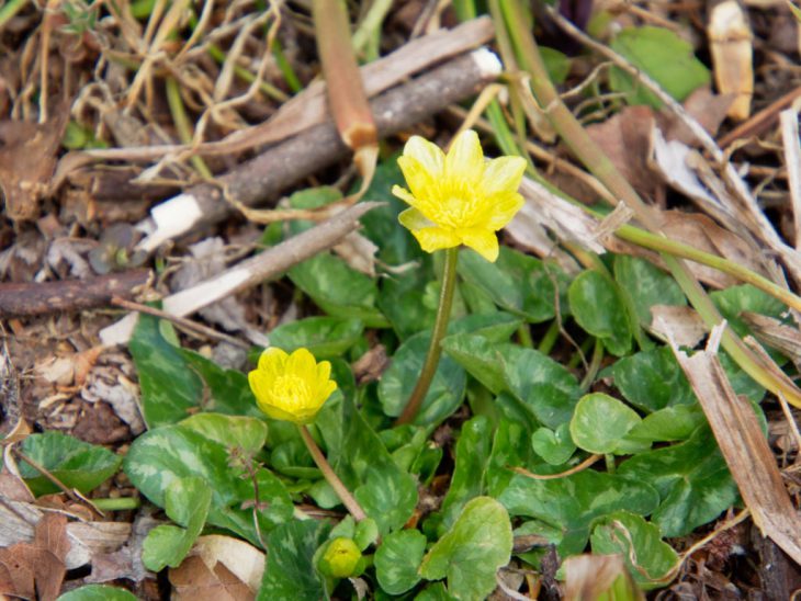 ラナンキュラス属の宿根草ですが、葉の形からかヒメリュウキンカの和名が付いています。リュウキンカはビオトープで使われるとおり、水辺に生える湿地の植物です。湿地や半抽水の環境でないとうまく育ちませんが、ヒメリュウキンカは普通の宿根草として扱えます。
