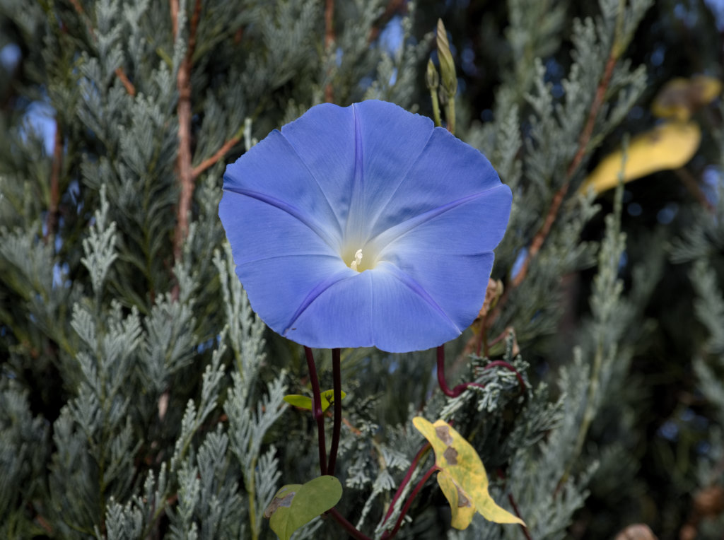 基本種は水色に近い淡い青色で、ツルニチニチソウのように広めの花びらです。