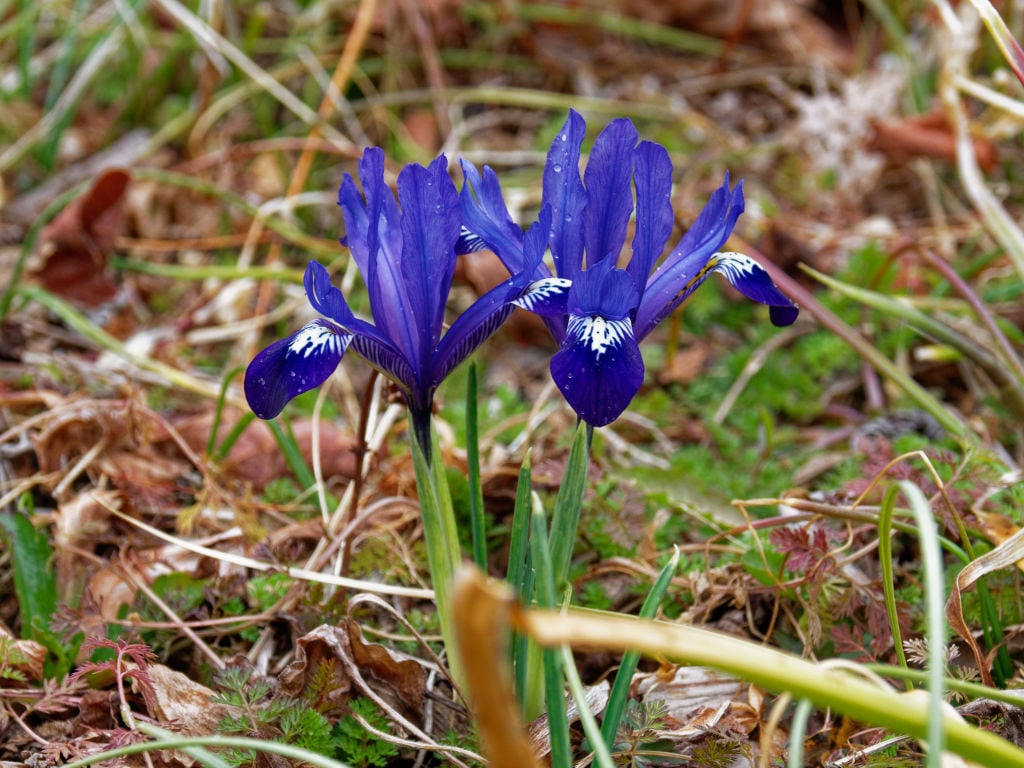 ミニアイリスと呼ばれるアヤメの仲間は、おもに春先に咲く小型の原種から育種して生まれました。選抜品種や交配品種もありますが、なかでも写真のレティキュラータ種を中心とした品種が多いようです。