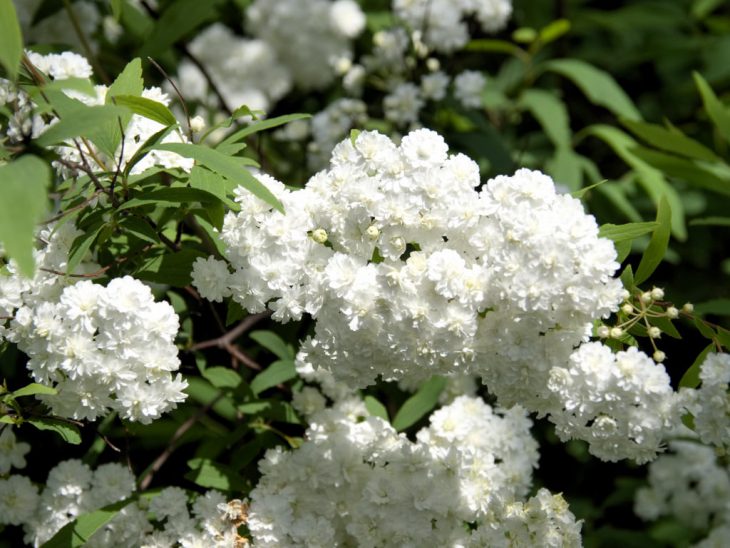 ユキヤナギと同じ仲間ですが、コデマリのほうが遅咲きでユキヤナギが終わって少し経ってから咲き始めます。時期としてはテマリシモツケと同じ頃で、晩春から初夏咲きになります。