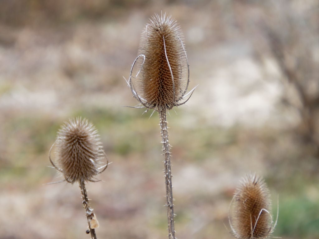 緑の頃はあまり目立たないチーゼルでも、冬の間は主役級です。