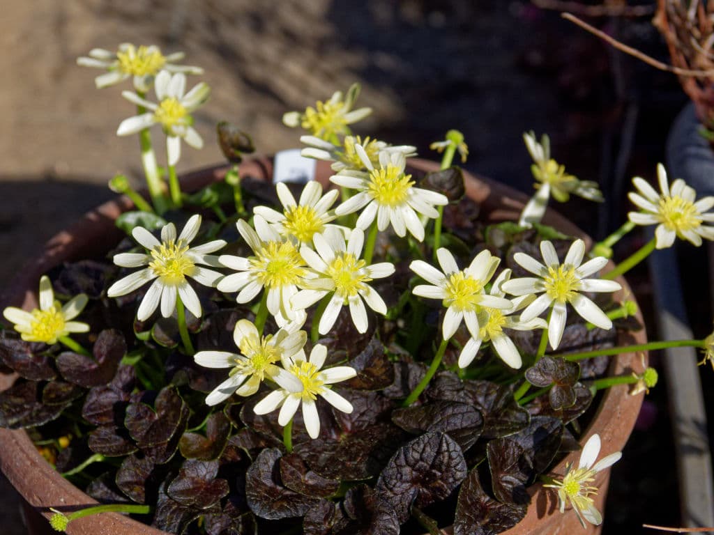 草姿の雰囲気が水辺の植物のリュウキンカに似ていることから、姫リュウキンカという名前で流通していますが、夏に休眠する球根性のラナンキュラスです。ヨーロッパ原産で、水気の多い林床に生えることの多い早春のお花です。日本だとウマノアシガタやヒキノカサというラナンキュラスがありますが、それらより少し暗い環境を好むようです。