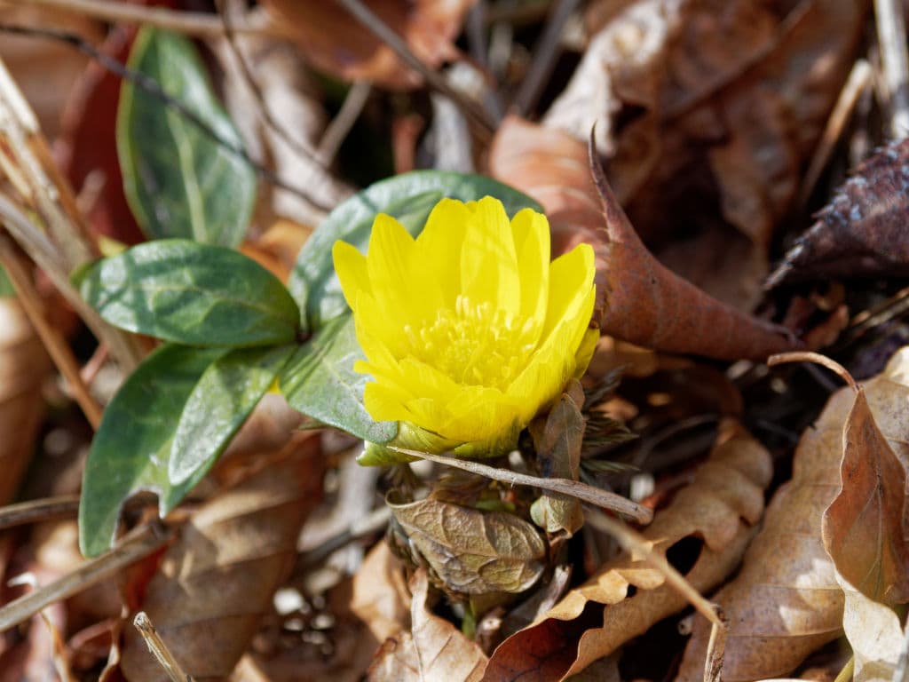 毎年、気付いたときには咲き進んでいて、咲き始めの可愛い姿を見ることが難しいフクジュソウですが、今年はちょうど咲き始めのお花に会うことが出来ました。