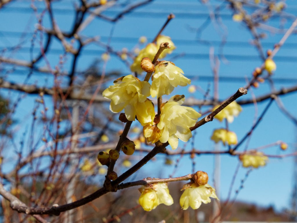 素心ロウバイが咲き始めて、今年も良い香りで楽しませてくれています。甲府では昨年末にはもう咲いていて、お正月飾りに使った知り合いもいて驚きましたが、基本的には1月から2月に咲く花木です。