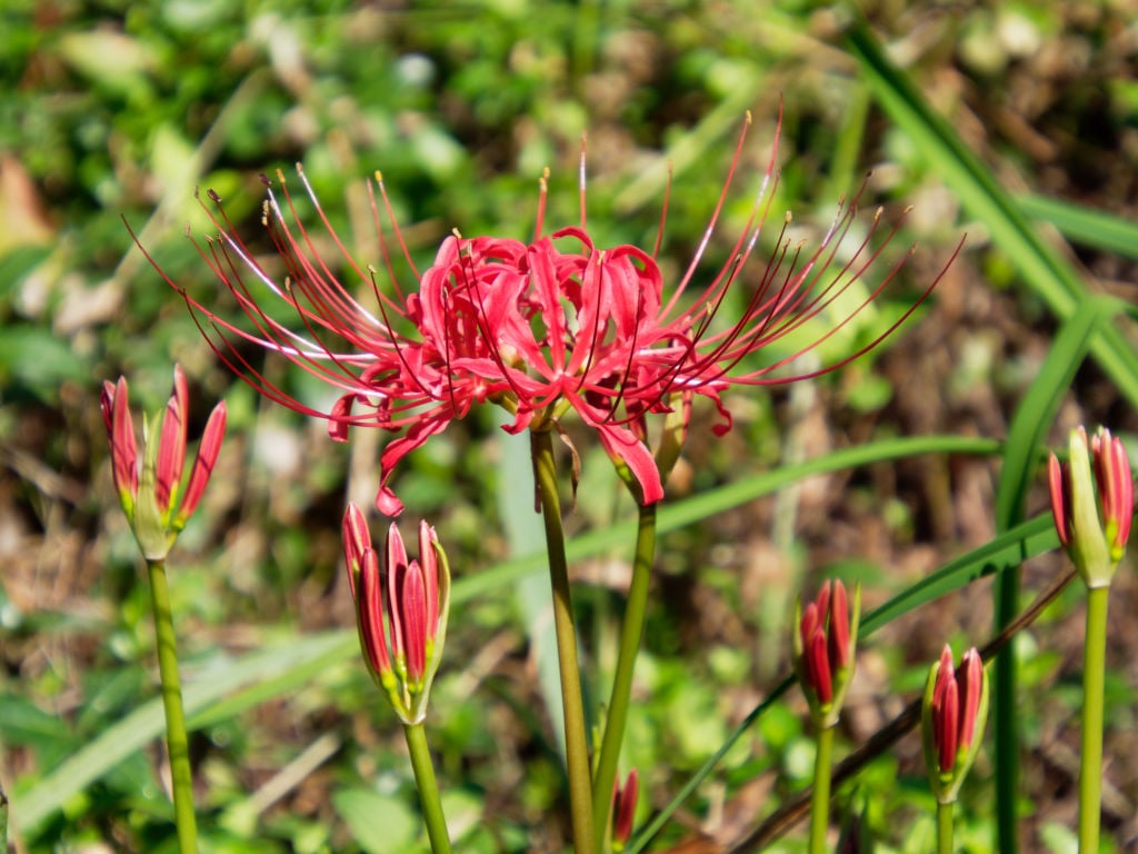 ヒガンバナは冬緑性という秋から葉が出て、冬の間青々として育ち春遅くに地上部が枯れる生態をしています。秋のお彼岸の頃、地上に何もなかった所から、突如としてにょきにょきと真っ赤な花が生えてくるのですから、不気味なイメージを持たれてしまったのかもしれません。