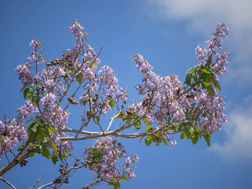 桐箪笥で知られる、キリのお花です。青空だと良く映えますね。