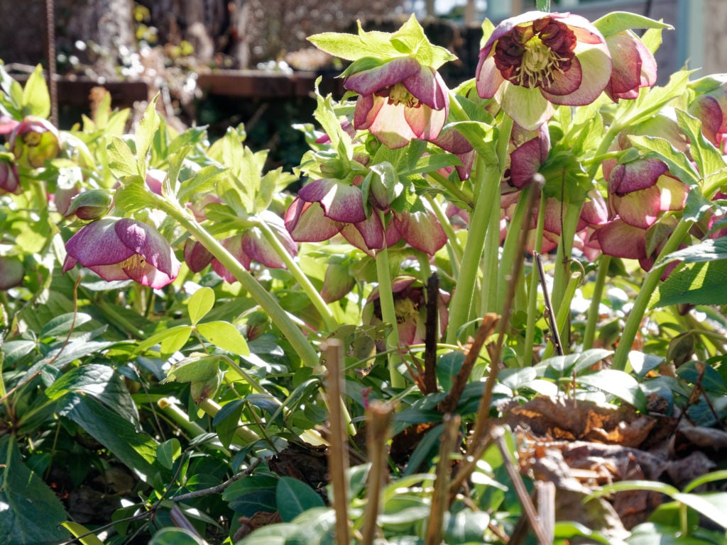 クリスマスローズは咲いてから時間が経つと、雄しべやネクタリーが落ち始めます。いわゆる老け花になっていくのですが、しばらくは花びらの色も残ったままできれいに見られる状態です。二番花が咲くまで時間が進むとさすがに老け花に見えますが、それでもけっこうきれいです。