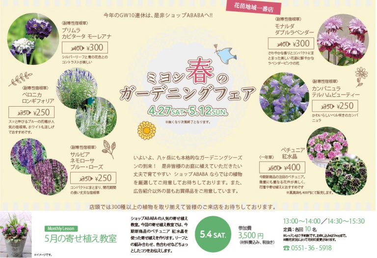 ShopABABA2019年春のガーデニングフェア開催します!