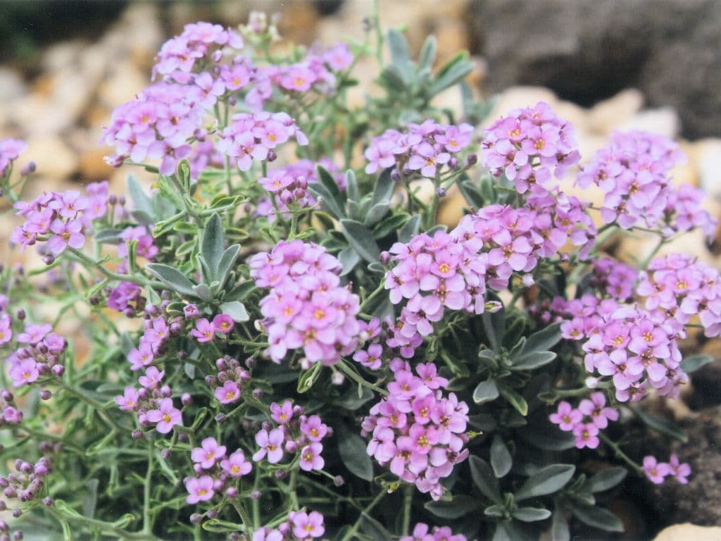 アリッサム属は80~160種あるといわれ、栽培は非常に少なく、スピノーサムやモンタナなどが、ロックガーデンなどで見られる程度です。