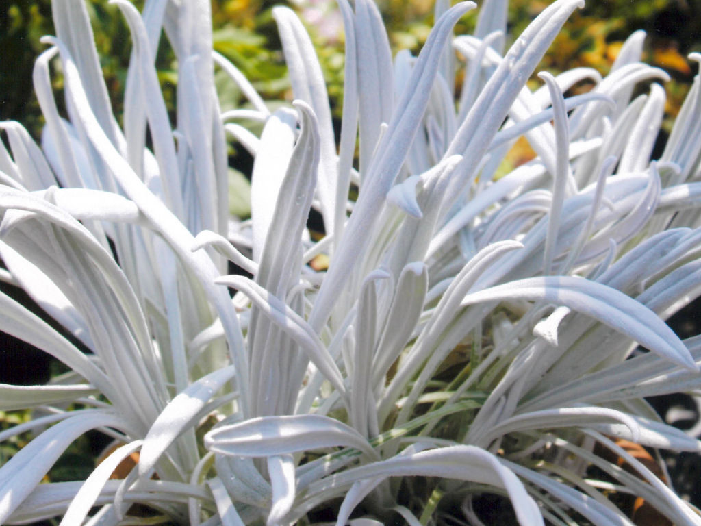 群植するとそこだけ別世界が広がるようで、シロタエギクなど、他のシルバーリーフプランツとはだいぶ印象が異なります。