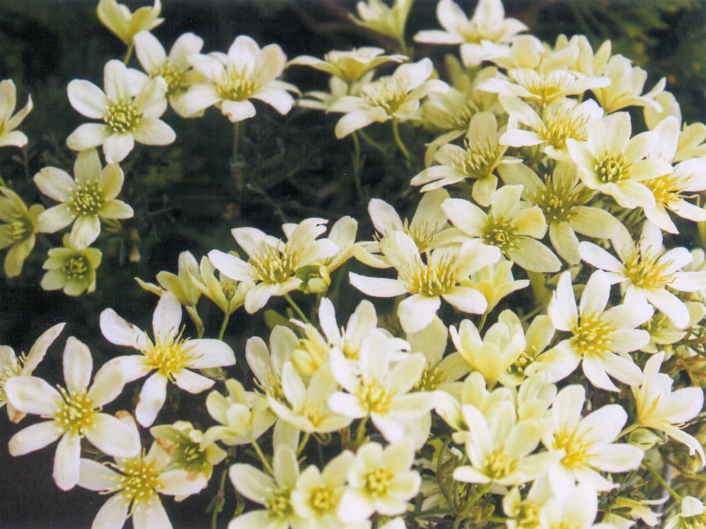 フォステリー系はこれらとはだいぶ異なり、ツルにはならずに、低木状に枝垂れて咲き、開花期は3~4月、芳香があります。
