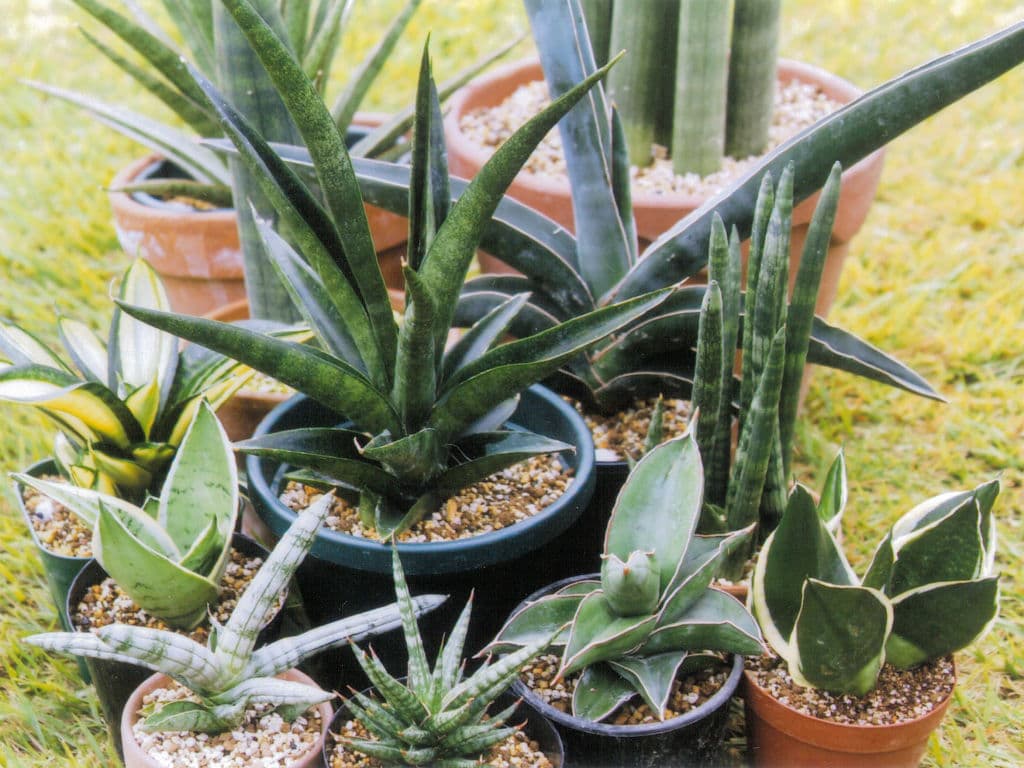 トラノオランのようなタイプのものから、丸い棒状のもの、アガベのような形のもの、ドラセナに似たものまで多様で、これがサンセベリア? というようなものもあります。