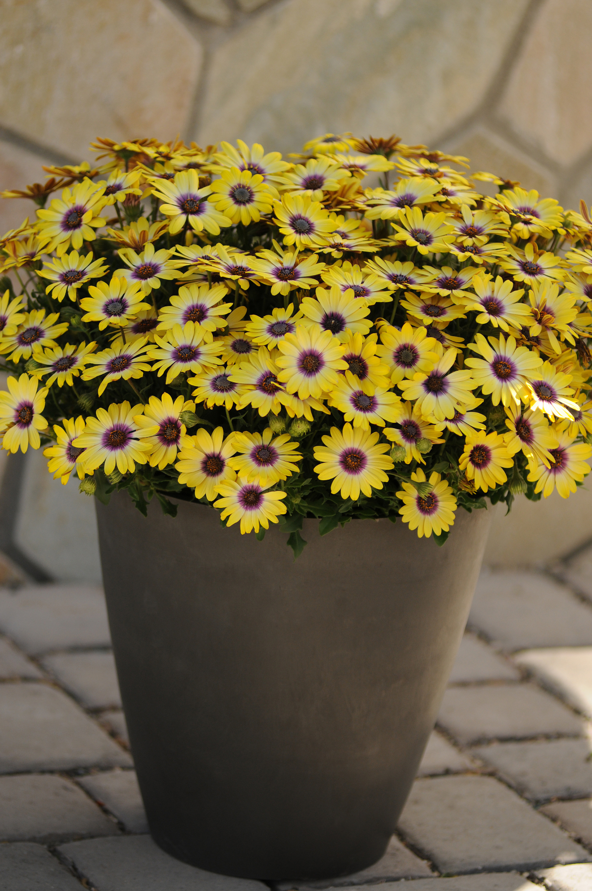 レモンイエローの花弁にブルーの目が入る、印象的なオステオスペルマム。 ガーデンで一際映える美しい色合 […] -