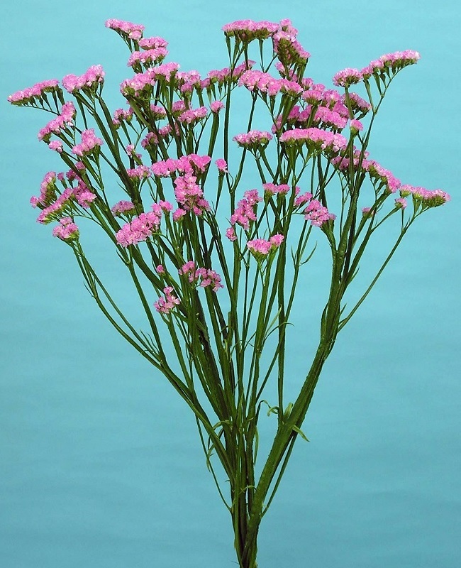 スターチス シニュアタ スターチス シニュアタはリモニウム属の一種ですが、園芸の世界ではリモニウム属の旧呼称であるスターチス(Statice)がよく使われています。 多彩に発色している部位は花ではなく萼(がく)で、その萼の中に白または黄の小さなかわいい花を咲かせます。 シュニアタは花がしぼんだ後も美しい萼が長期間残るので、「永遠の花(everlasting flowers)」とも呼ばれます。 アレンジメントや花束、ドライフラワーなど様々な場面で活躍している品目です。