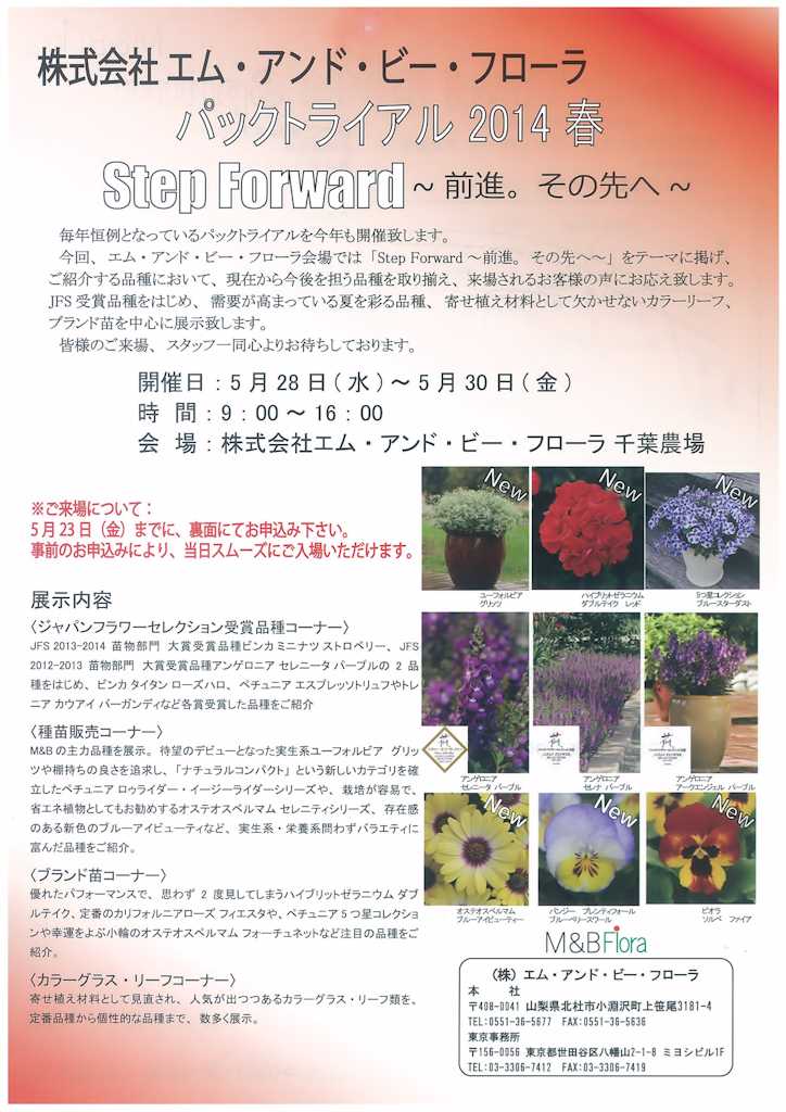 詳しくはM&Bフローラのお知らせページをご覧下さい。