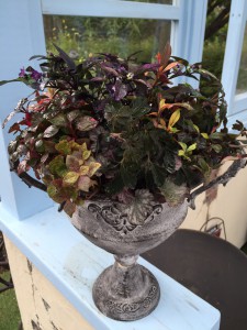 人気のトロフィーカップには、秋のリーフをふんだんに使った寄せ植えを!